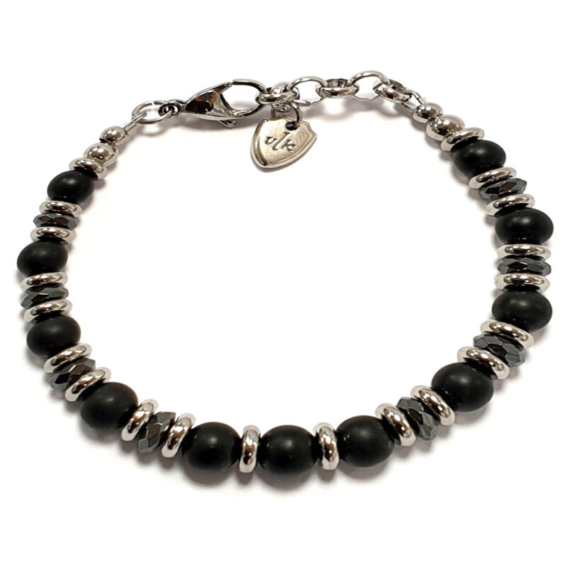 - [MATERIALI]: acciaio, pietre dure. Il bracciale è composto da VERE pietre dure. Le perline sono montate su una ROBUSTA e RESISTENTE catenina in acciaio. Il bracciale è leggero e comodo; può essere indossato tutti i giorni e non si rovina a contatto con l’acqua.