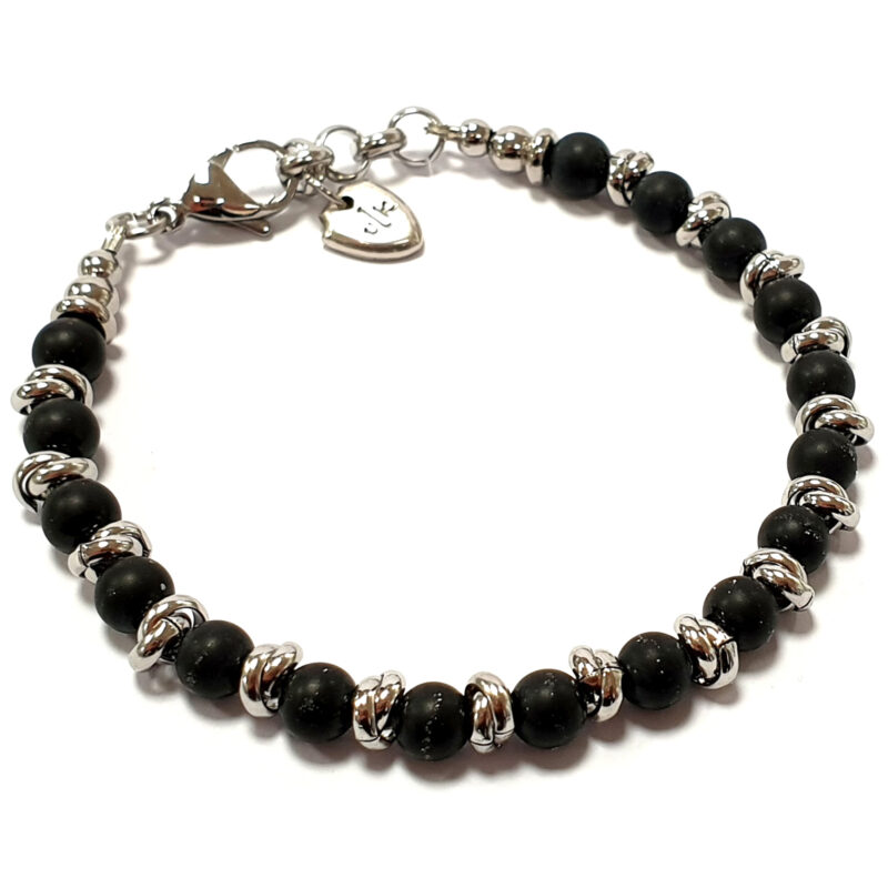 - [MATERIALI]: acciaio, pietre dure. Il bracciale è composto da VERE pietre dure. Le perline sono montate su una ROBUSTA e RESISTENTE catenina in acciaio. Il bracciale è leggero e comodo; può essere indossato tutti i giorni e non si rovina a contatto con l’acqua.