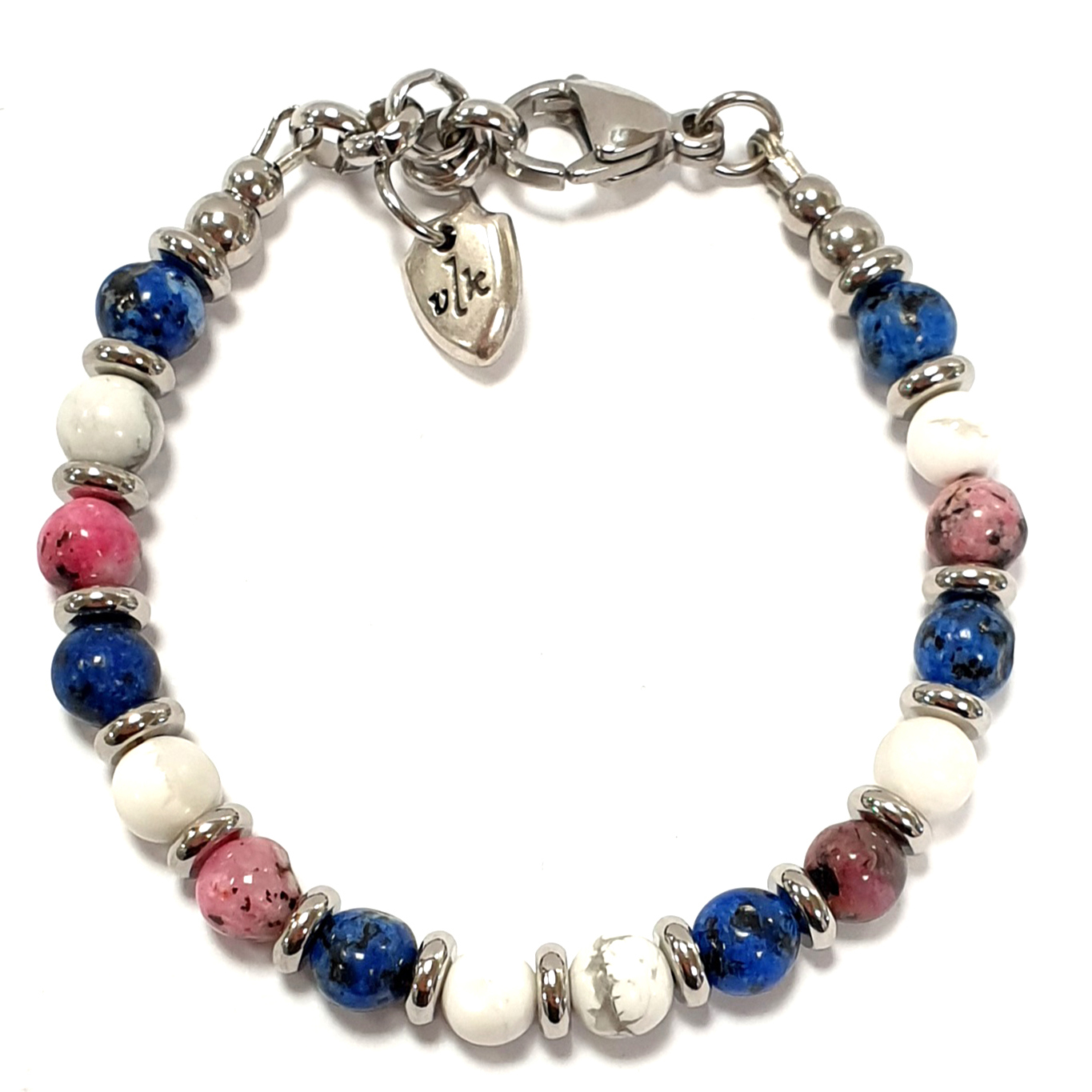 - [MATERIALI]: acciaio, pietre dure. Il bracciale è composto da VERE pietre dure. Le perline sono montate su una ROBUSTA e RESISTENTE catenina in acciaio. Il bracciale è leggero e comodo; può essere indossato tutti i giorni e non si rovina a contatto con l’acqua.