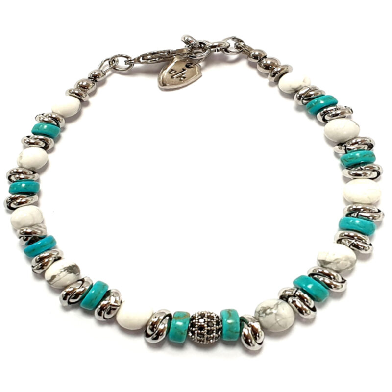 - [MATERIALI]: acciaio, pietre dure. Il bracciale è composto da VERE pietre dure. Le perline sono montate su una ROBUSTA e RESISTENTE catenina in acciaio. Il bracciale è leggero e comodo; può essere indossato tutti i giorni e non si rovina a contatto con l’acqua.