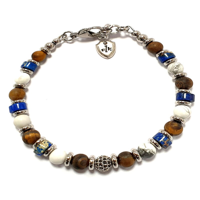 • [MATERIALI]: acciaio, pietre dure. Il bracciale è composto da VERE pietre dure. Le perline sono montate su una ROBUSTA e RESISTENTE catenina in acciaio. Il bracciale è leggero e comodo; può essere indossato tutti i giorni e non si rovina a contatto con l’acqua.