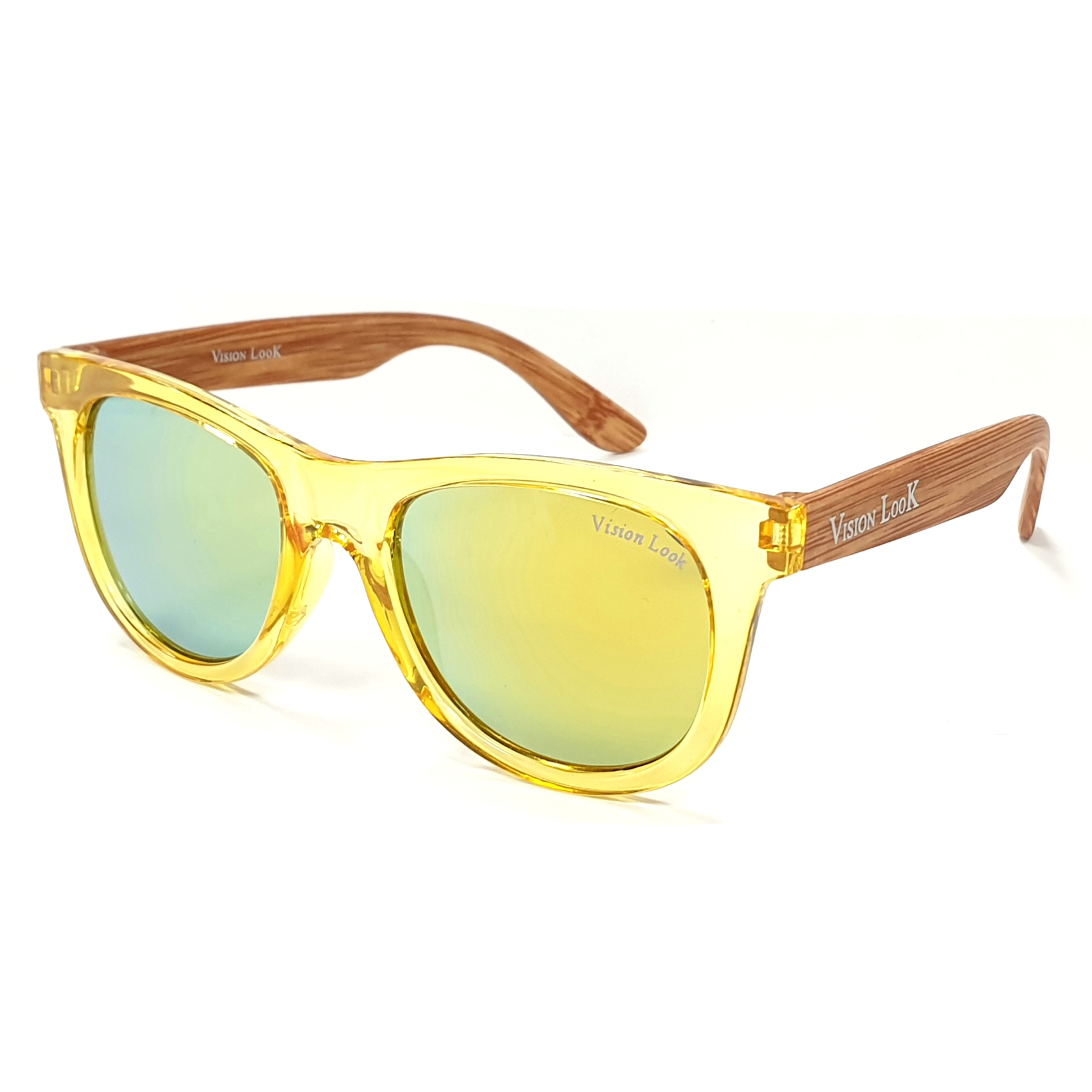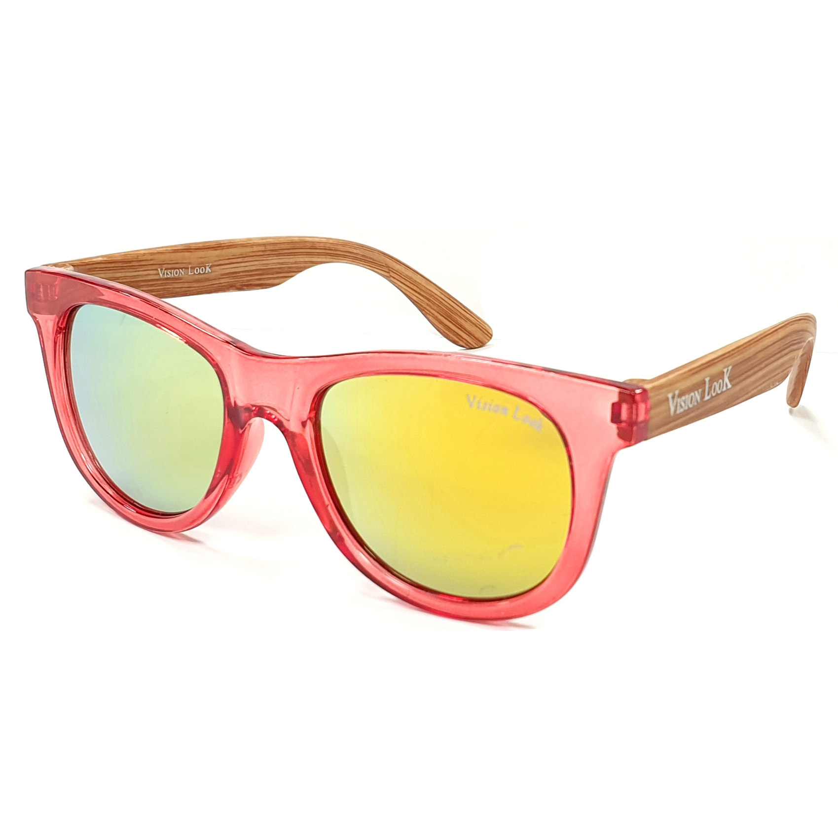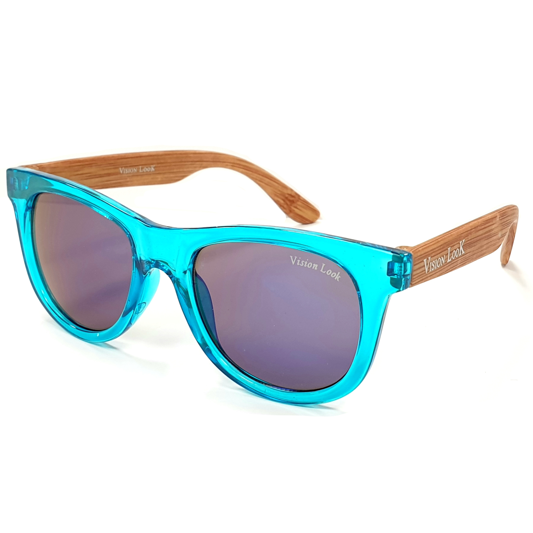 Vision Look Kids - Lunettes de soleil pour enfants avec monture Wayfarer teintée et branches effet bois, protection UV400