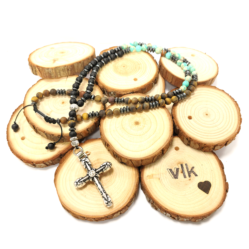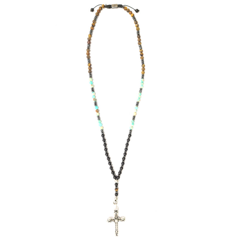 COLLANA ROSARIO CON FILO INTRECCIATO E PIETRE DURE